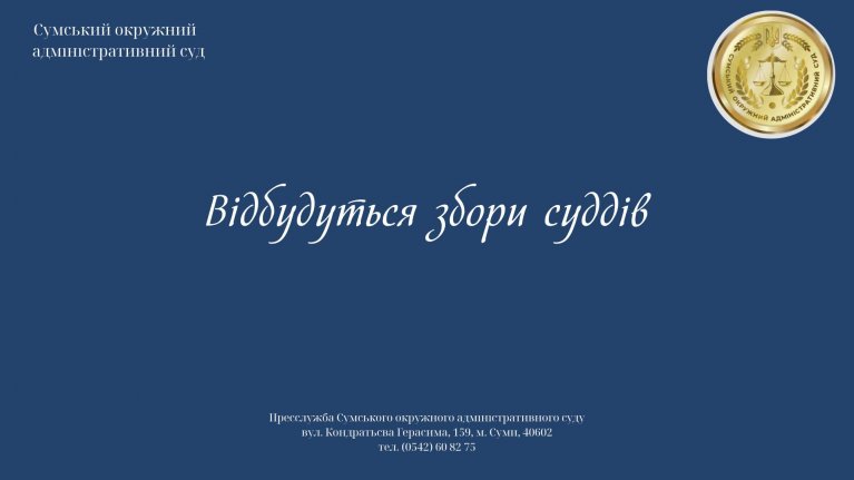 02.04.2026 року о 13 год 30 хв відбудуться збори суддів Сумського окружного адміністративного суду.